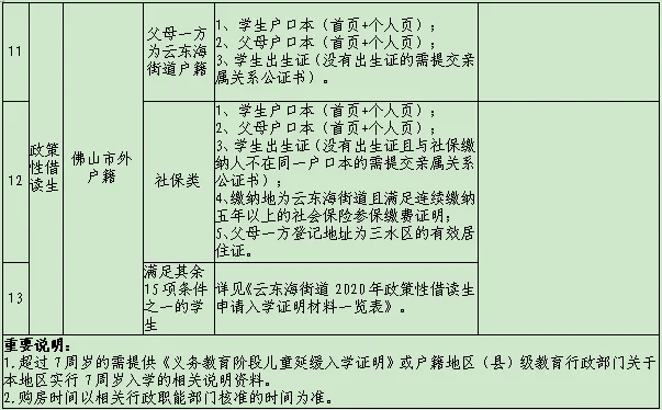 特别说明:根据《佛山市非户籍常住人口子女申请入读义务教育阶段公办学校实施办法(2019年修订)》,父母在云东海街道已获得住宅房屋权属证书或已备案购房合同,且住宅建筑面积不低于80平方米的佛山市外户籍适龄儿童,自本年起不再按照原政策性借读生有关规定执行,若不符合其他政策性借读条件的,统一纳入积分服务体系,具体按照普通借读生积分入学方案申请办理。